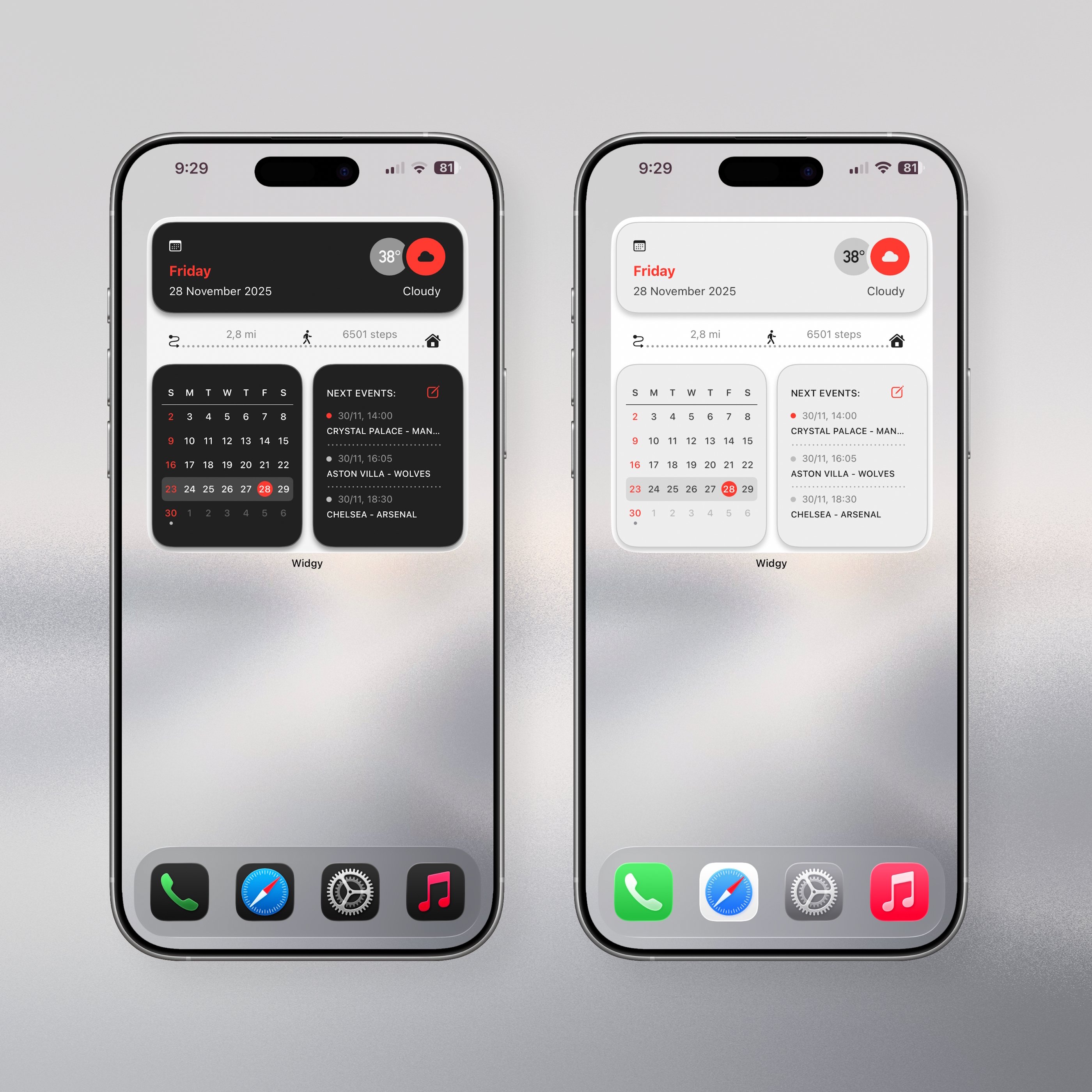 MICHIGAN pack includes 1 .png wallpaper 1320x2868 pixels and 12 Widgy widgets (one medium and one large in 2 color modes(monochrome and red accent), also in light, dark and light-dark modes.