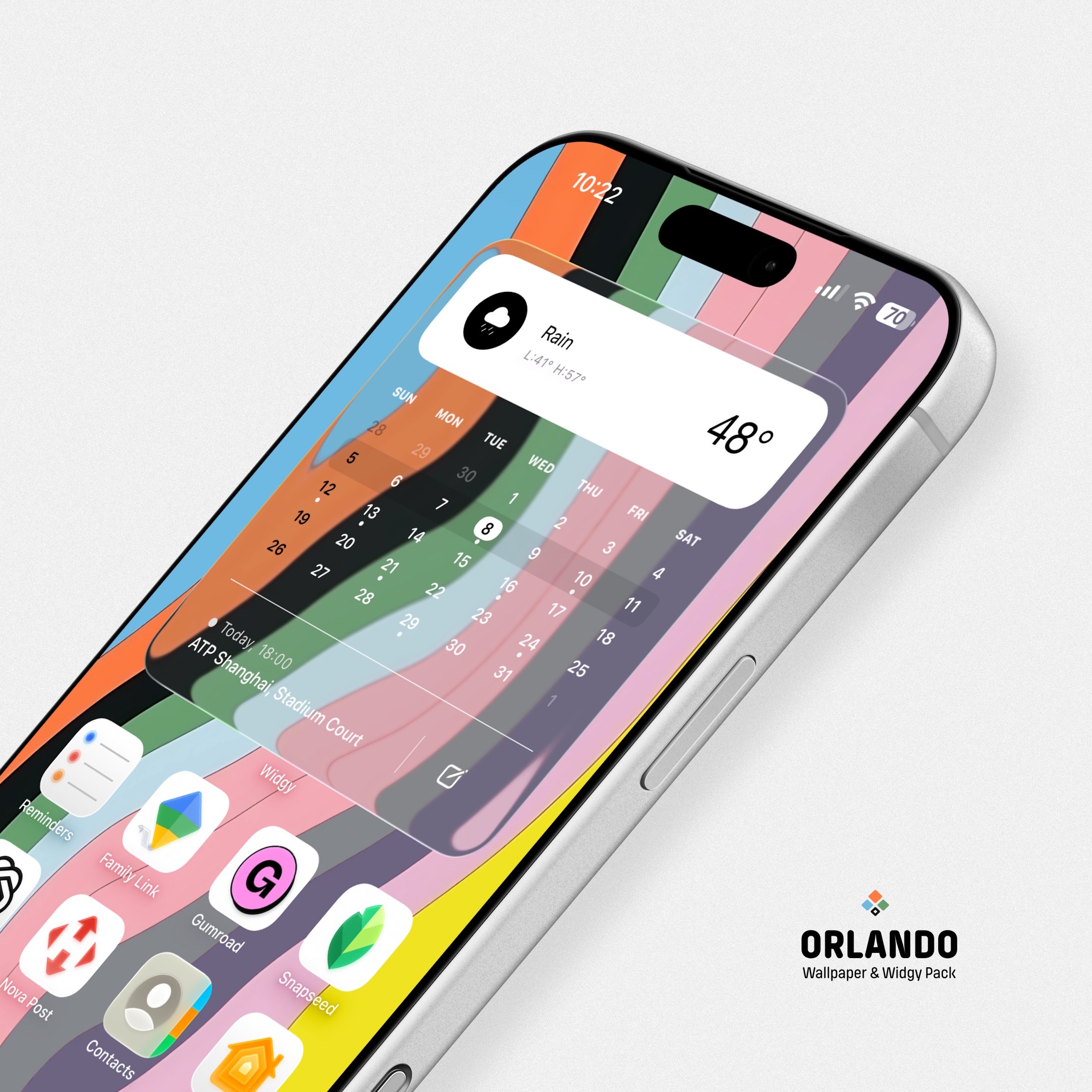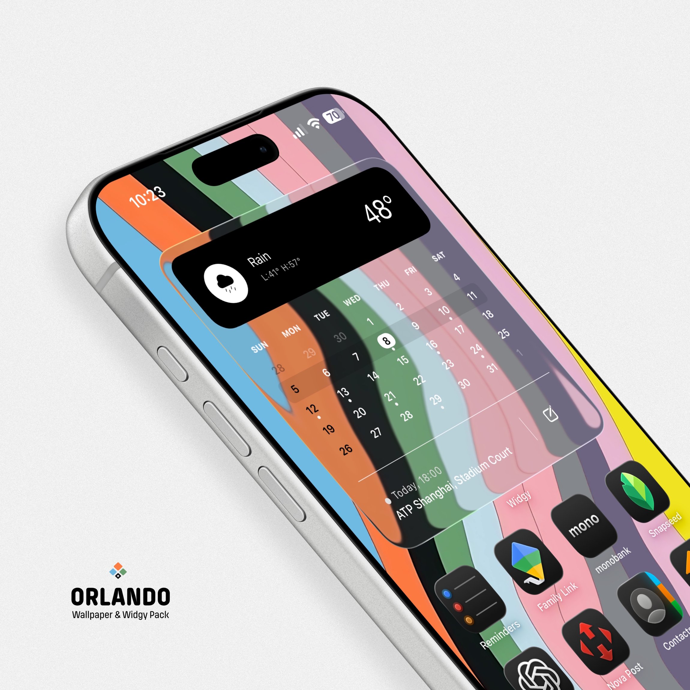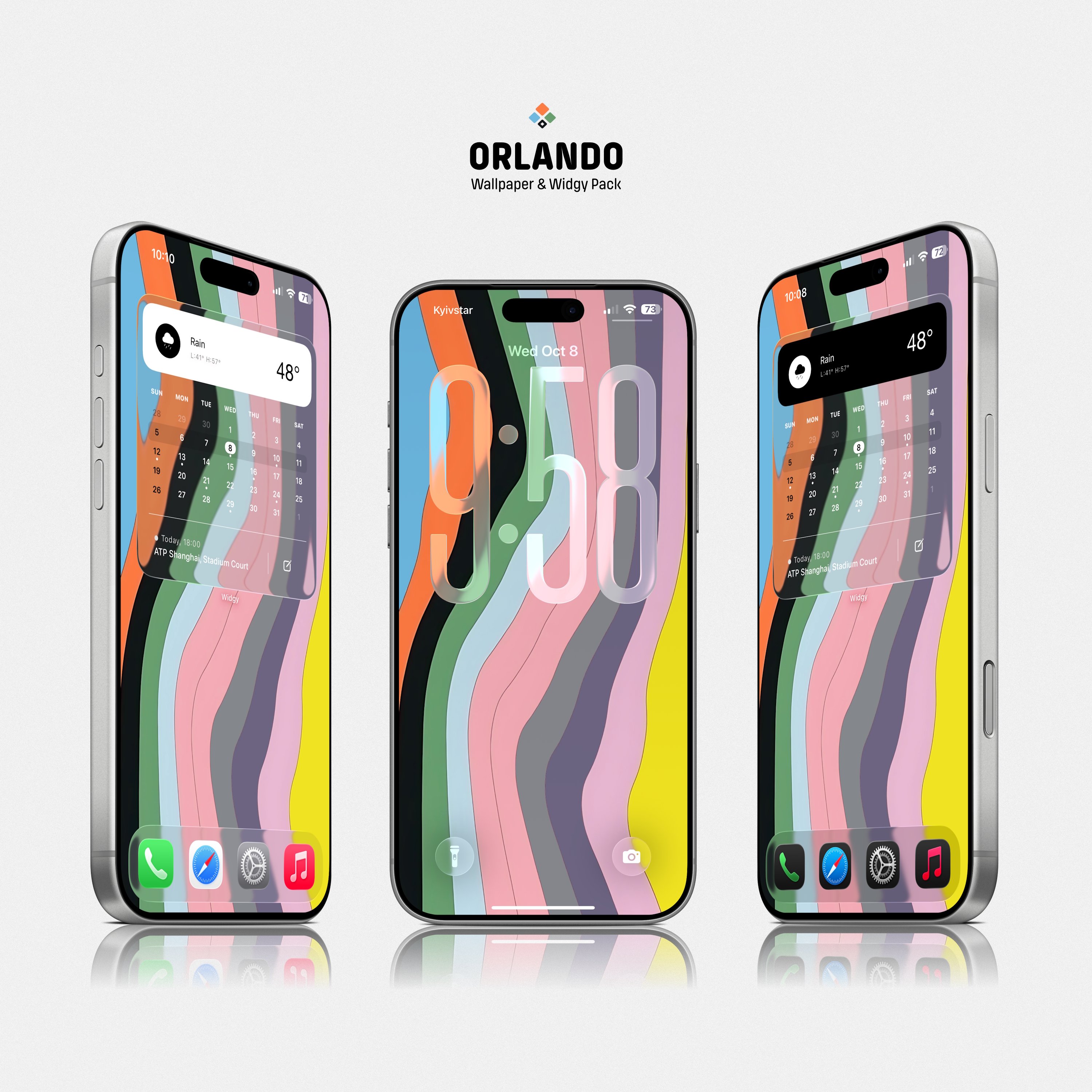 ORLANDO Pack includes 1 PNG wallpaper 1320x2868 pixels and 3 large Widgy widgets (light,dark and light-dark modes).