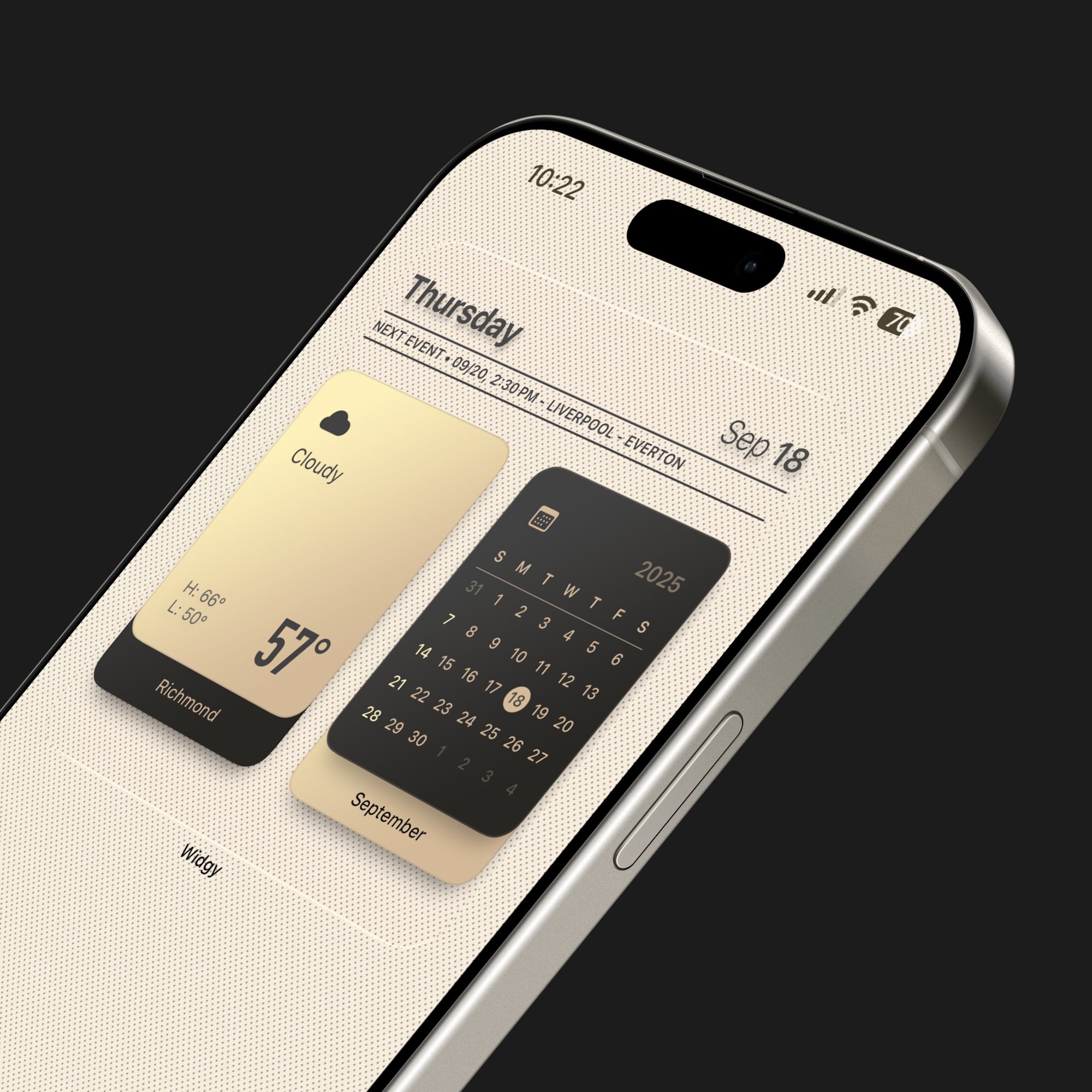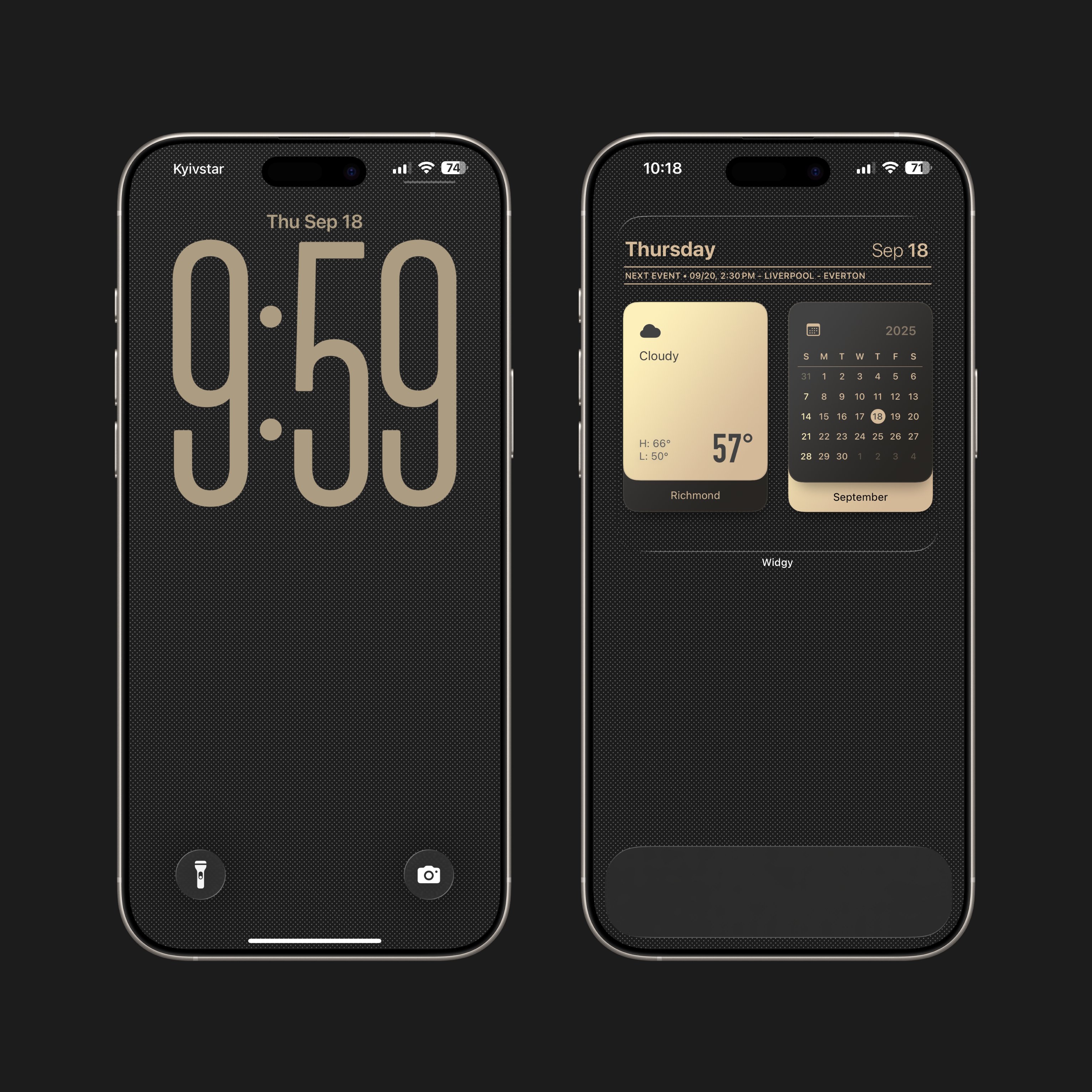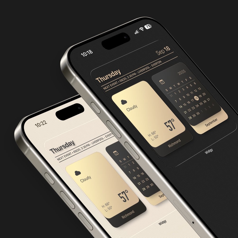 RICHMOND GOLD Pack includes 2 PNG wallpapers 1320x2868 pixels and 3 large Widgy widgets (light,dark and light-dark modes).