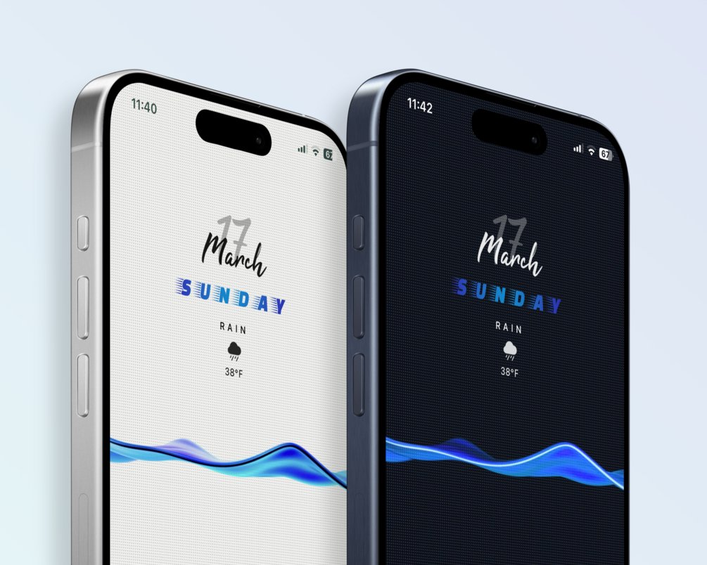 WAVE Pack includes 2 wallpapers for Iphone (2796*1290).png and 1 large Widgy widget in 3 variants (Light Pack, Dark Pack and Light/Dark Pack). Some fonts of this widget support only English !